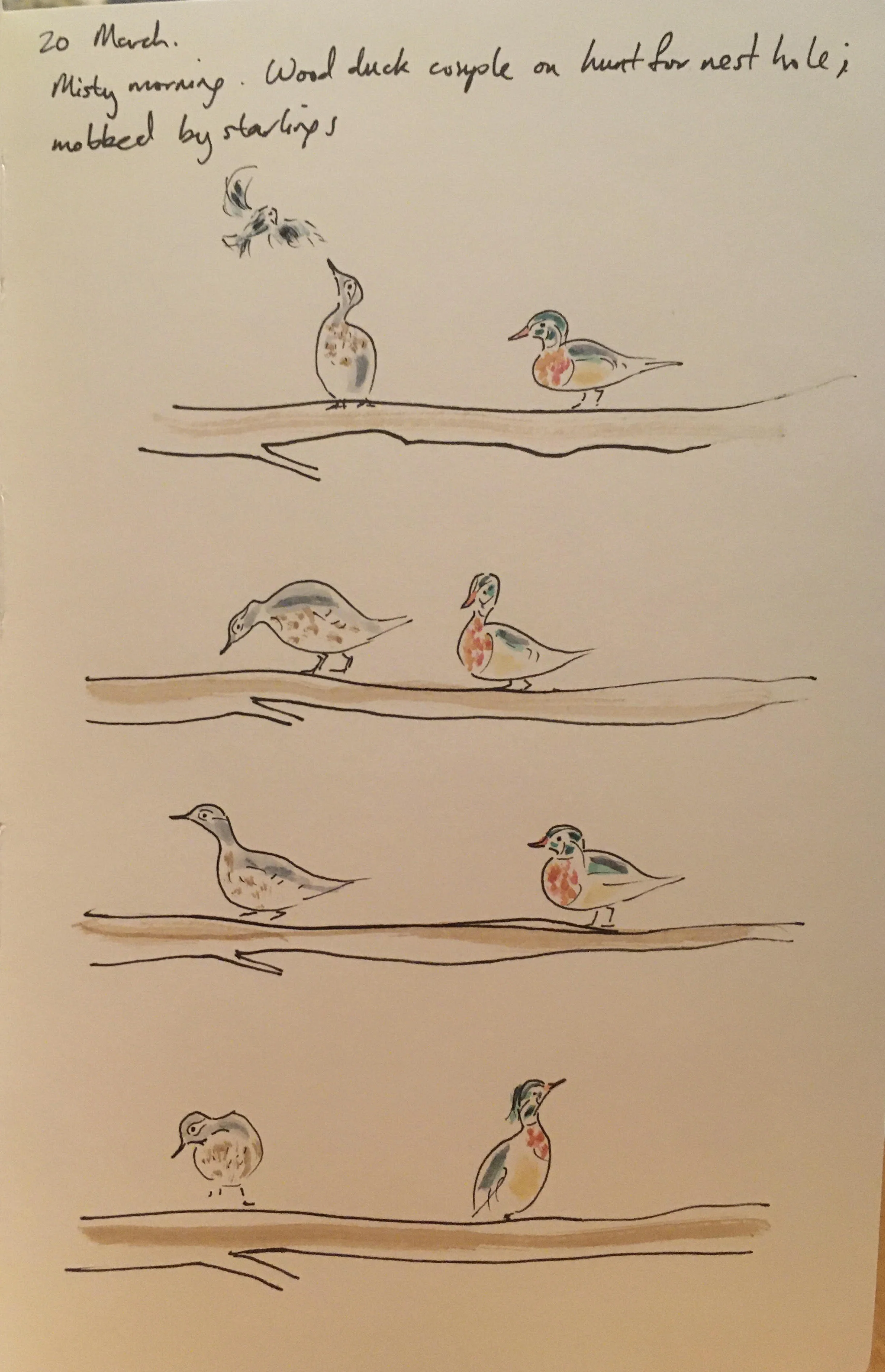 I love sketching and painting animals and landscapes, or illustrating websites, scientific talks and papers. My work includes pen and ink, Chinese brush painting, watercolour and oils. Some of my travel and birding journals are on my blog, and as part of a science-art collaboration, I produced this installation on chickadees.